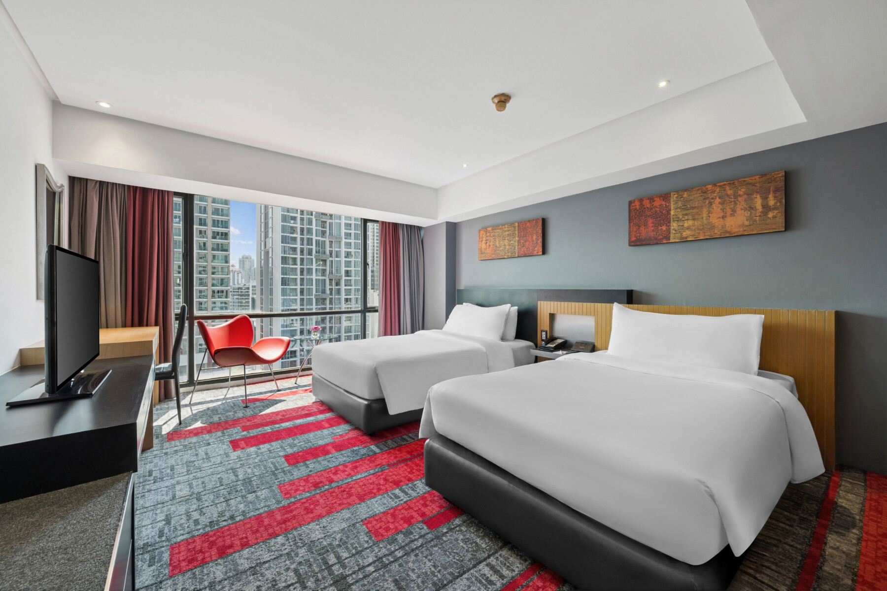 Situated on floors 15 to 18, the 36 sqm Tribeca Deluxe Room combines a generous sense of space with an elevated city outlook. Designed for guests who appreciate both comfort and practicality, the room features an oversized work desk, ergonomic seating, and modern interiors.